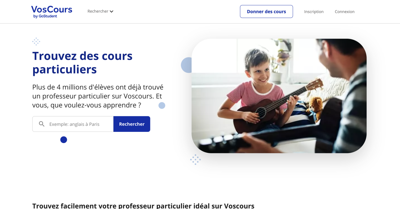 Vous possédez une compétence particulière ? Vous maîtrisez les maths, les langues étrangères, un instrument de musique, une danse particulière ou encore la cuisine ? Ce site est idéal pour donner des cours en ligne. On y propose une multitude de matières. À ce jour, il regroupe près de 20 millions de professeurs qui sont tous certifiés. En fonction des besoins et critères de l’apprenant qui sollicite un cours, vous pourrez être amené à enseigner à domicile. Pour vous inscrire, vous n’avez qu’à créer votre profil via le site. Vous pouvez indiquer votre localisation pour donner des cours particuliers à Bordeaux, Lyon, Paris ou n’importe quelle ville en France. Puis, il ne vous reste qu’à fixer vos tarifs et horaires. Une fois que vous intégrez la plateforme en tant que professeur, c’est un jeu d’enfant d’échanger avec l’apprenant et d’organiser les cours.